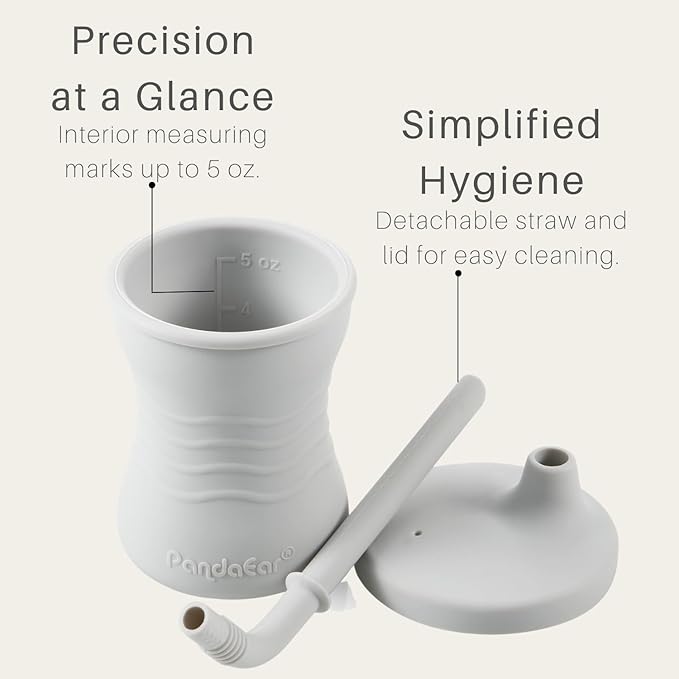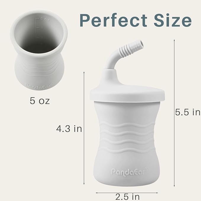 - Perfectly Sized for Tiny Hands: PandaEar silicone training cup is thoughtfully designed for little hands and mouths, making it an ideal choice for your baby's transition from a bottle to a cup. Capacity: 5 OZ