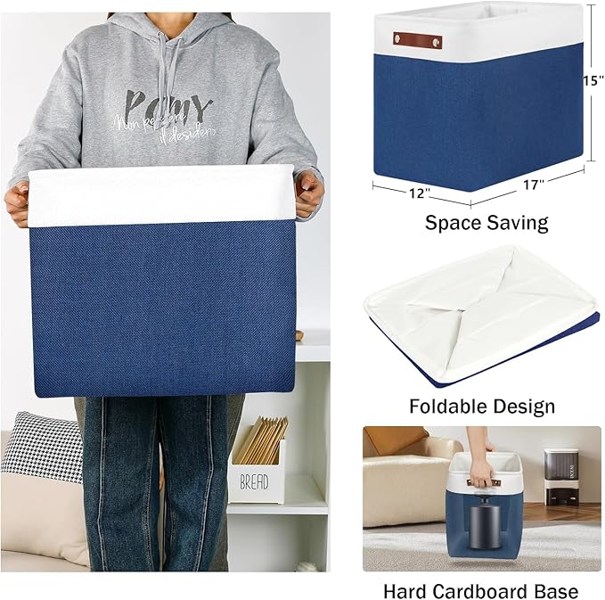- 【Unique Design & Modern & Decorative】Set of 2 large storage baskets, dimensions(each): 17(L) x 12(W) x 15(H) inches. Collapsible storage baskets bring you organizing convenience and a sweet home. Great for socks, underwear, books, magazines, toys, baby clothes, pet products, wipes, towels, decorations, office supplies, DVDs, and gifts. The fabric baskets with neutral colors can match a lot of home styles - keeping your home nice and tidy.