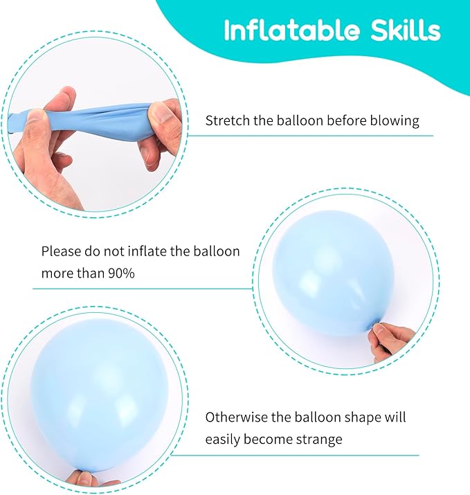 - EASY TO USE: It is equipped with ribbon and glue, making the balloons kit easy to use. You can fully use your imagination and make balloon decorations of different shapes. We suggest that you use a balloon pump to blow up balloons, which is more efficient. Birthday balloons can remain a good shape for a long time after inflation.