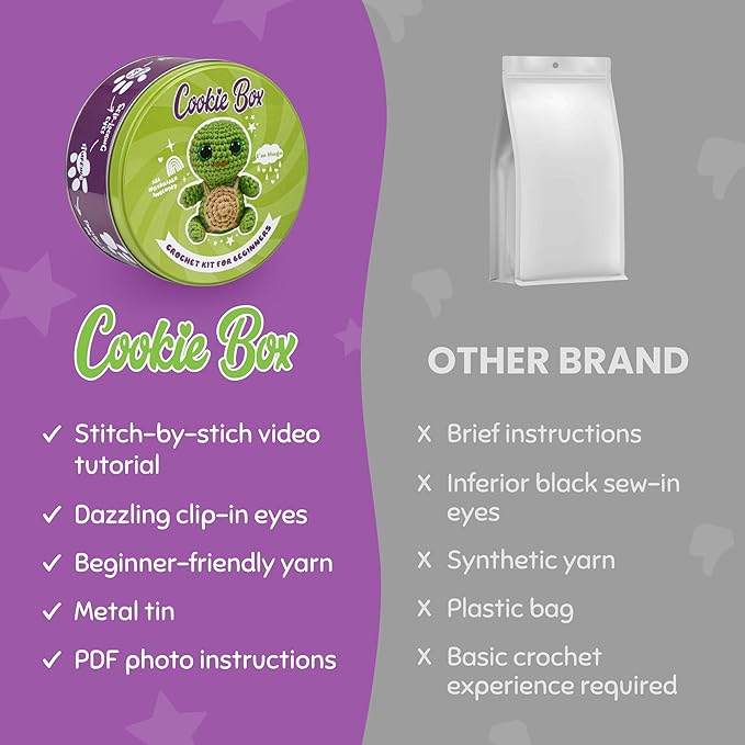 - 💖 Our Promise to You: The entire Cookie Box team is committed to making crochet truly beginner-friendly, frustration-free, and rewarding. Every kit is designed for the best learning experience, combining high-quality materials, clear guidance, and real support. Thank you for being part of the Cookie Box crochet community!