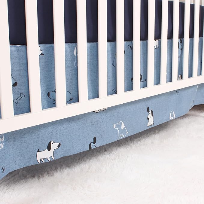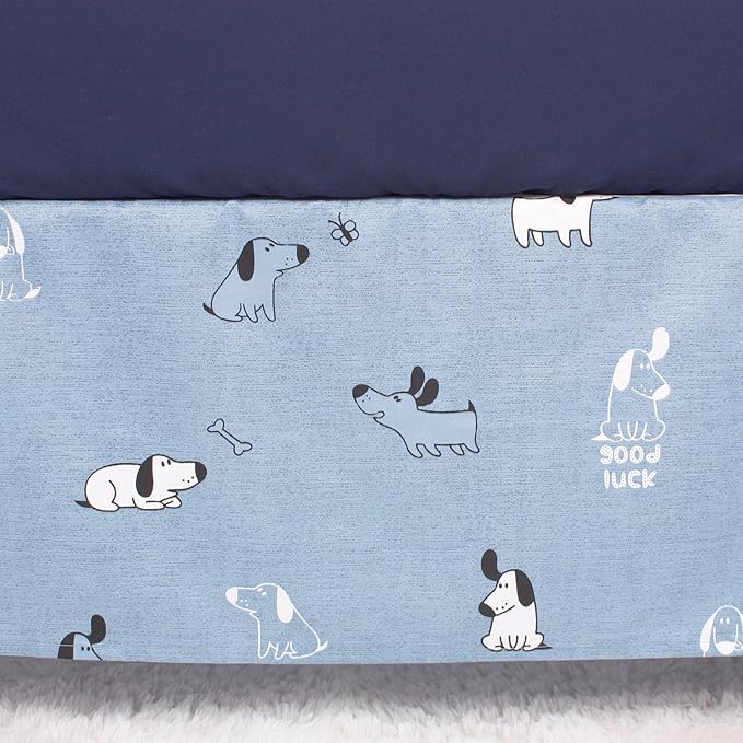 CaSaJa Baby 3-Piece Crib Bedding Set for Boys Girls, Including Soft Quilted Comforter(Blanket), Fitted Crib Sheet and Skirt, Soft Nursery Bedding Set Made of Silky Comfy Materials, Good Luck Puppy