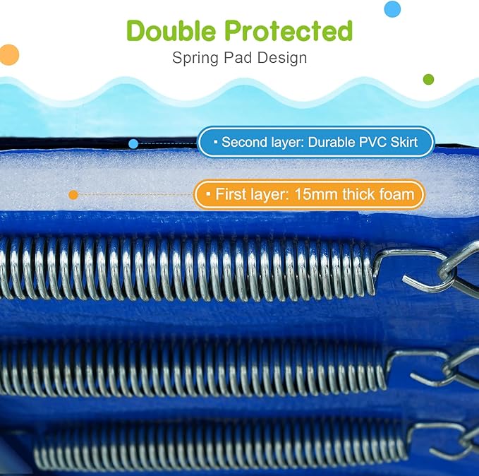 - 【More Springs & Impressive bounce】 As we all know springs are the core of the trampoline, we have 12 more hot-dip galvanizing springs to offer impressive bounce.(7inch for 12&14&15&16ft, 5.5inch for 8&10ft)