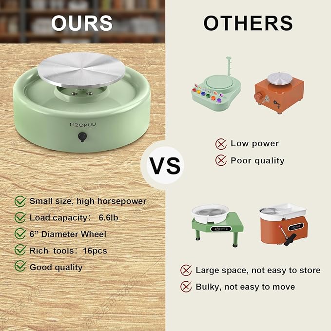 - Lightweight and Easy to Store: Designed by professional pottery wheel designers, it optimizes the operating space, making projects easier to complete. This pottery wheel for kids is compact and lightweight, and can be displayed on a shelf as an artwork after creation.