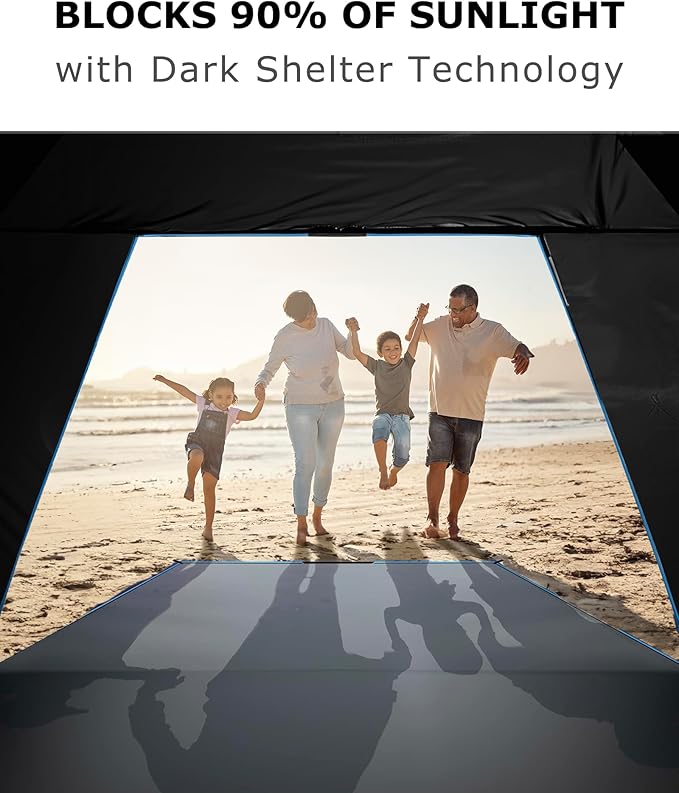 - [High-Quality Dark Shelter Coating Material] Venustas beach tents provide increased sun protection thanks to an innovative dark shelter coating material. With UPF 50+ UVProtection, it successfully blocks 99% of harmful UVA and UVB rays, reducing the risk of sunburn or harm, making it ideal for kids or adults lounging out. This ensures a cooler and more comfortable environment inside the tent.