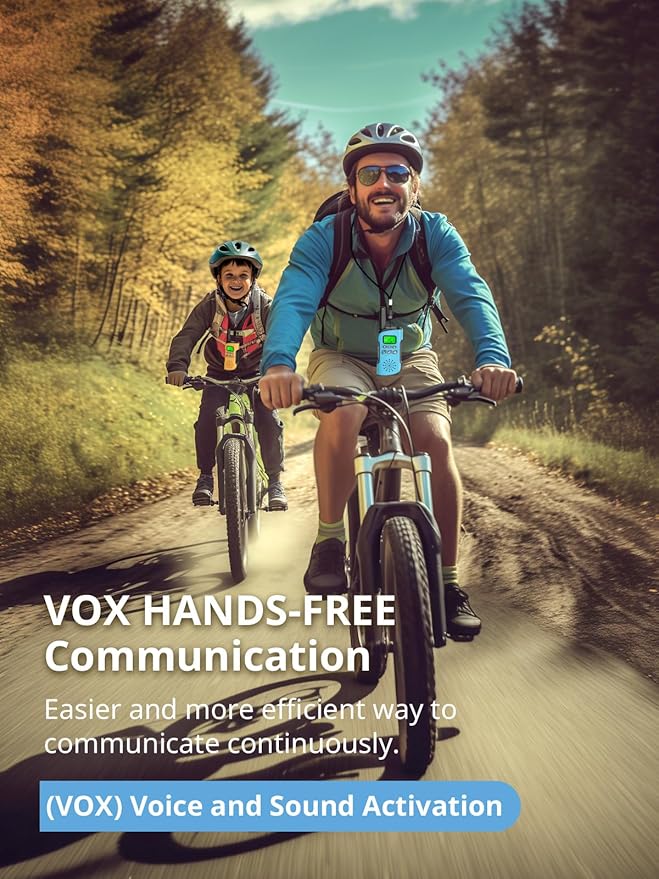 - Easy to use with hands-free VOX function, these walkie talkies feature a backlit LCD screen for visibility during both day and night. In addition to the push-to-talk feature, VOX mode allows kids to speak without pressing any buttons, which is great when riding bikes or playing outside.