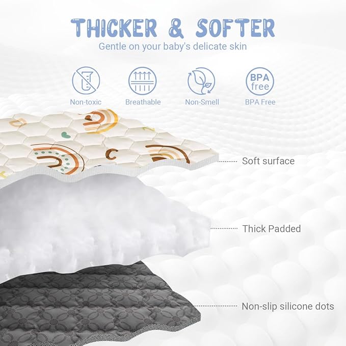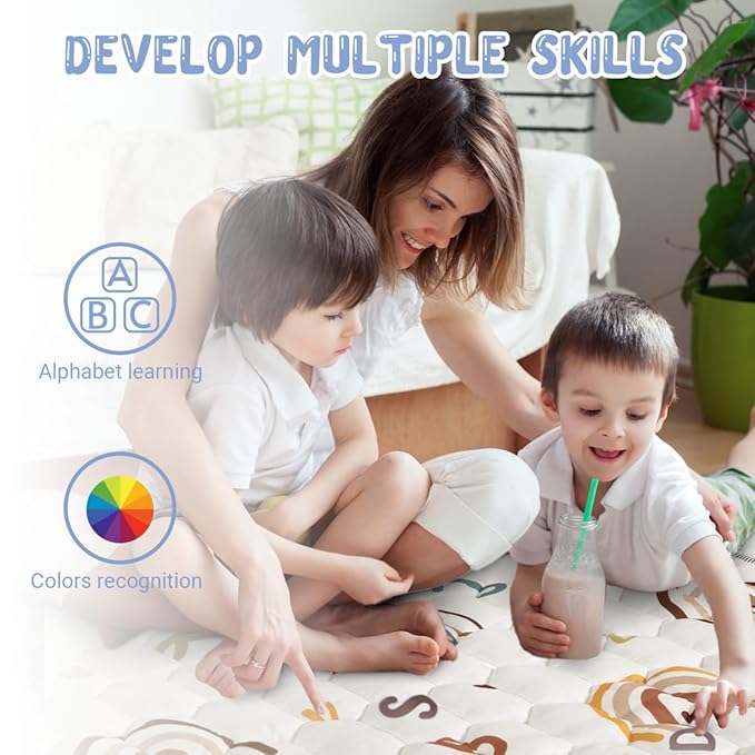 - 【Educational Design】The play mats for babies and toddlers printed with unique boho rainbow pattern, matching colortful letters design. this makes the floor play mat not only visually stimulating but also educational, helping to develop your baby's cognitive and sensory skills. thickened & soft mat great cushion for babies rolling, tummy time, crawling, sit up, stand and learning to walk, create a soft & safe place area for your little angel.