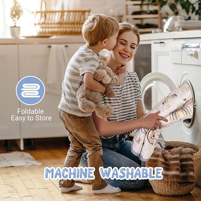 - 【Portable & Machine Washable】50x50 play mat is a single durable piece that can be easily folded and packed, making it perfect for on-the-go playtime. the special quilting process can support it to be washed in the washing machine without deformation, easy to clean and maintain.