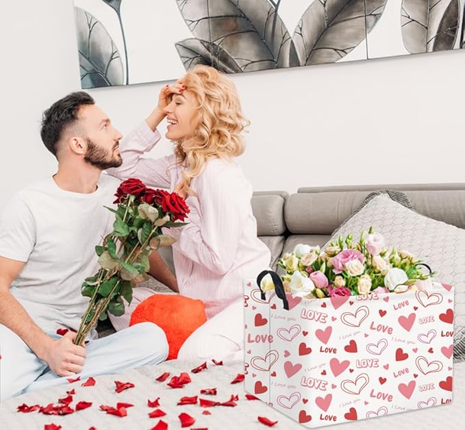 - MATERIAL:The valentines day basket basket is made of durable canvas &The inner lining is made of waterproof fabric; sturdy metal rod frame around the top keep the basket shape.
