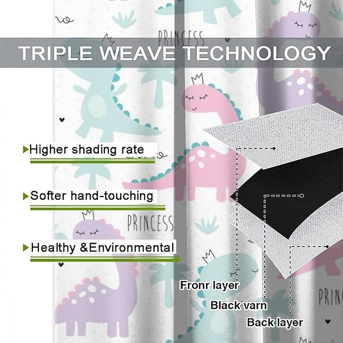 Kids Dinosaur Curtains for Boys Girls Bedroom Decor Cartoon Dino Colorful Cute Funny Animal Wildlife Printed Blackout Rod Pocket Window Drapes for Baby Nursery Playroom Living Room W21xL45in Decor