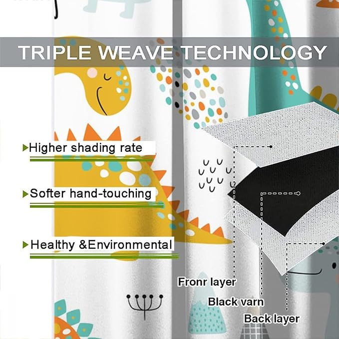 Dinosaur Curtains for Kids Boys Girls Home Decor Childish Cute Dino Animals Print Pattern Rod Pocket Blackout Window Drapes for Nursery Baby Bedroom Playroom W26xL84in 2 Panels