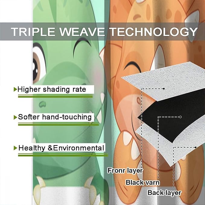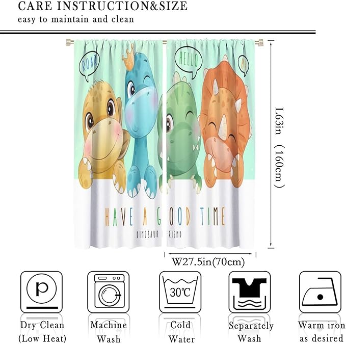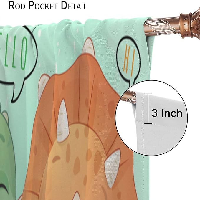 Kids Dinosaur Curtains for Boys Girls Bedroom Decor Cartoon Dino Colorful Cute Funny Animal Printed Blackout Rod Pocket Window Drapes for Baby Nursery Playroom Living Room W27.5xL63in 2 Panels