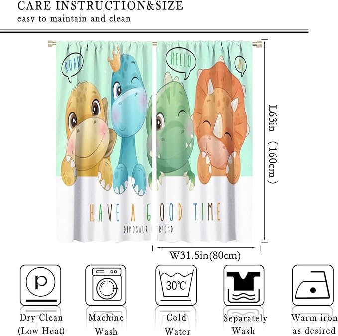 Kids Dinosaur Curtains for Boys Girls Bedroom Decor Cartoon Dino Colorful Cute Funny Animal Printed Blackout Rod Pocket Window Drapes for Baby Nursery Playroom Living Room W31.5xL63in 2 Panels