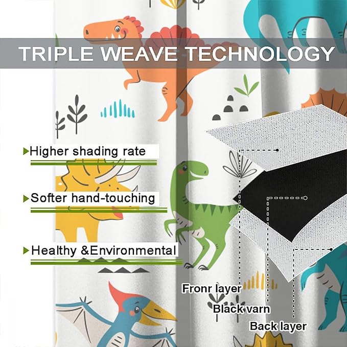 Kids Dinosaur Curtains for Boys Girls Bedroom Decor Cartoon Dino Colorful Cute Funny Animal Wildlife Printed Blackout Rod Pocket Window Drapes for Baby Nursery Playroom Living Room W21xL45in Decor