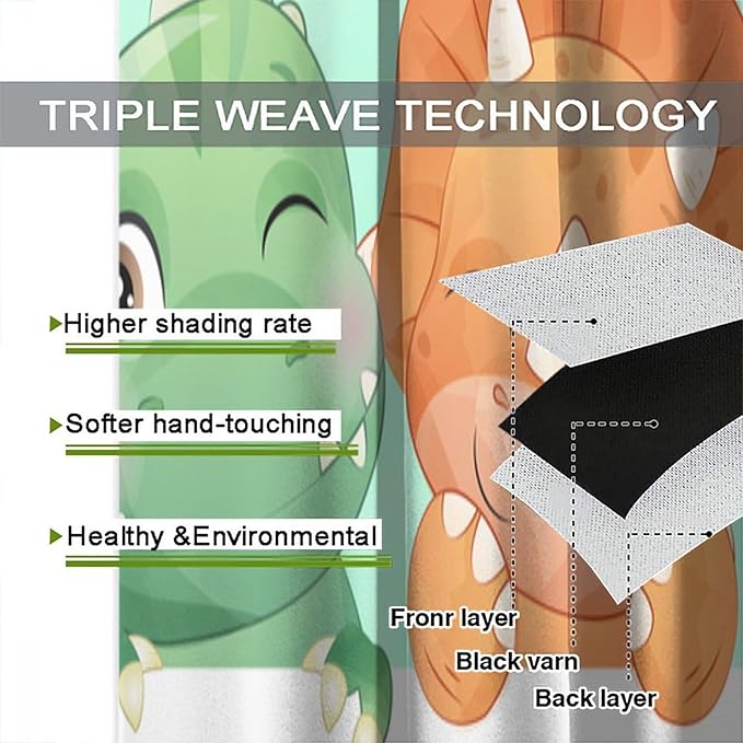 Kids Dinosaur Curtains for Boys Girls Bedroom Decor Cartoon Dino Colorful Cute Funny Animal Printed Blackout Rod Pocket Window Drapes for Baby Nursery Playroom Living Room W21xL45in Decor