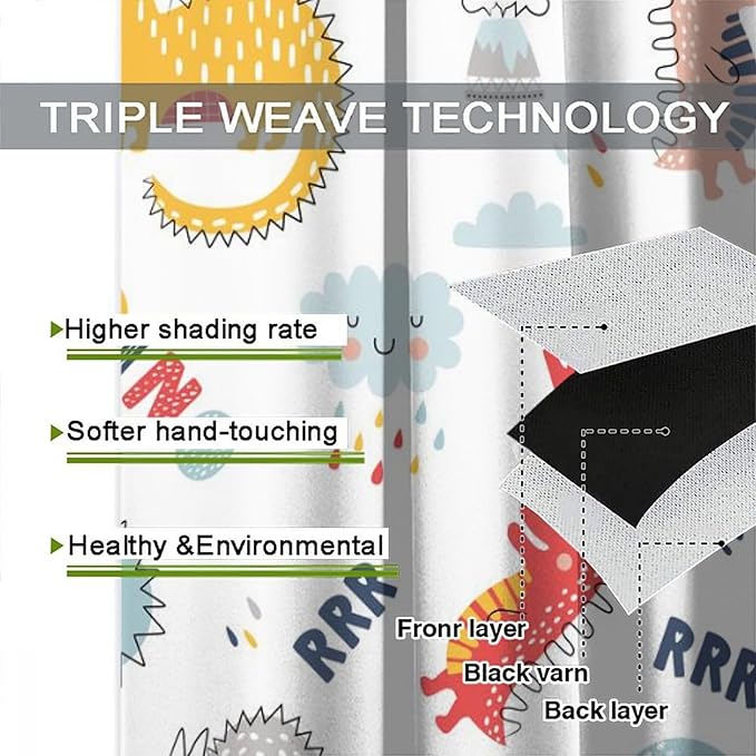 Cartoon Dinosaur Curtains for Kids Boys Girls Home Decor Colorful Cute Dino Animals Print Pattern Rod Pocket Blackout Window Drapes for Nursery Baby Bedroom Playroom W31.5xL72in 2 Panels