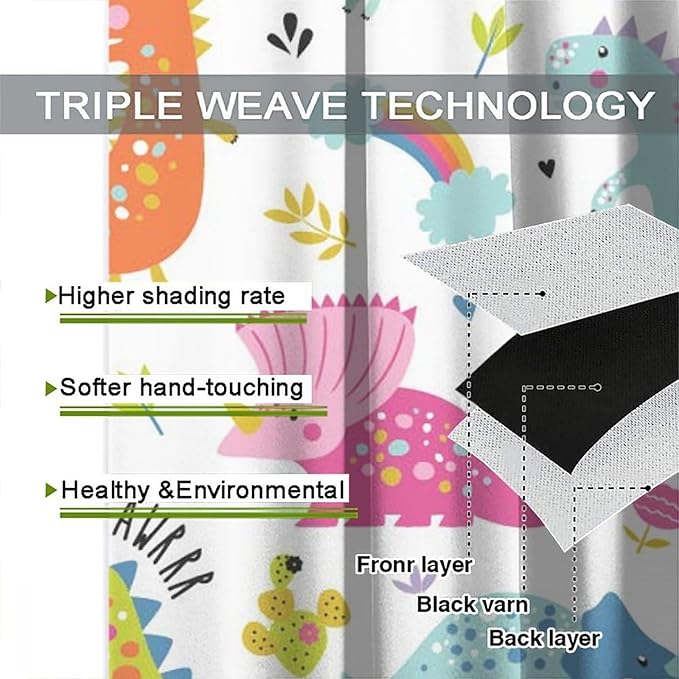 Cartoon Dinosaur Curtains for Kids Boys Girls Home Decor Childish Cute Dino Animals Print Pattern Rod Pocket Blackout Window Drapes for Nursery Baby Bedroom Playroom W21xL45in 2 Panels