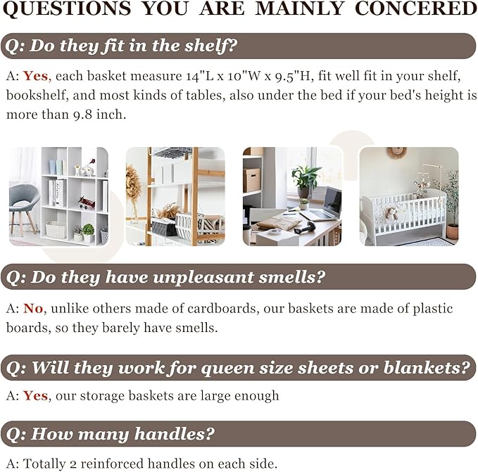 - 【MULTI-PURPOSE】 Our 4 pcs closet storage bins are home essentials to save storage space and keep everything organized. Large enough baskets for organizing clothes, kid’s toys, nursery room items, extra linens, laundry, towels, sheets, pantry and more.