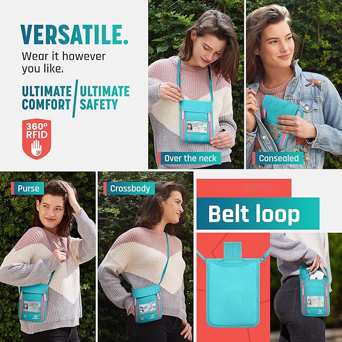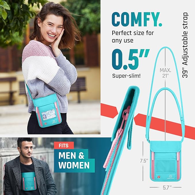 - Ultra-Slim and Comfortable Travel Neck Wallet: Innovative, breathable, moisture-resistant fabric for security and comfort during international travel. Includes new RFID blocking material for added protection.