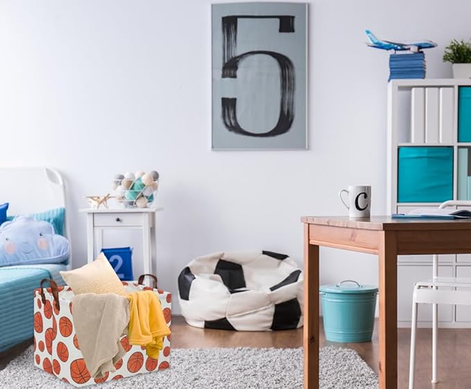 HIYAGON Rectangular Basketball Basket Kids Gift Basket Baby Toy Storage Bin Organizer Box Room Decor(Basketball)