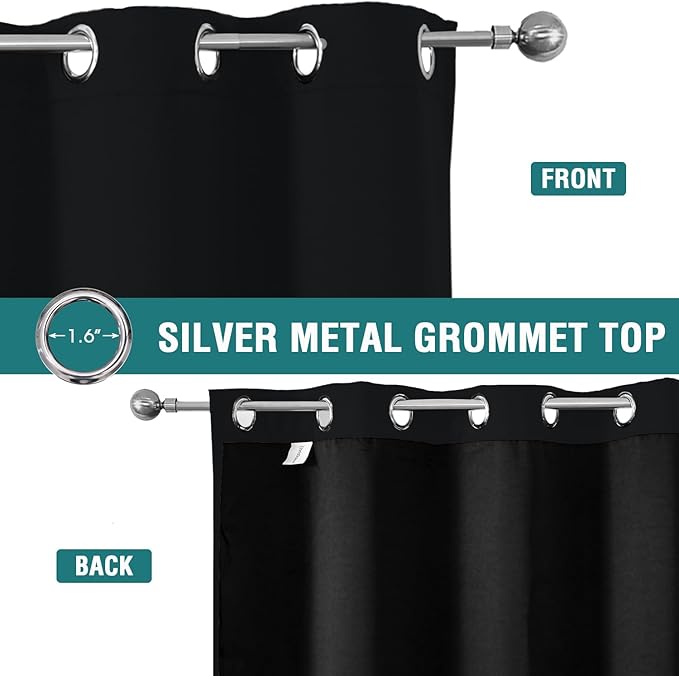 - SET DETAILS: Set of 2 total blackout curtain panels per package. Each lined curtain measures 42 inch wide by 63 inch long with 6 silver metal grommets (1.6 inch inner diameter) on top, easy to install and slide.