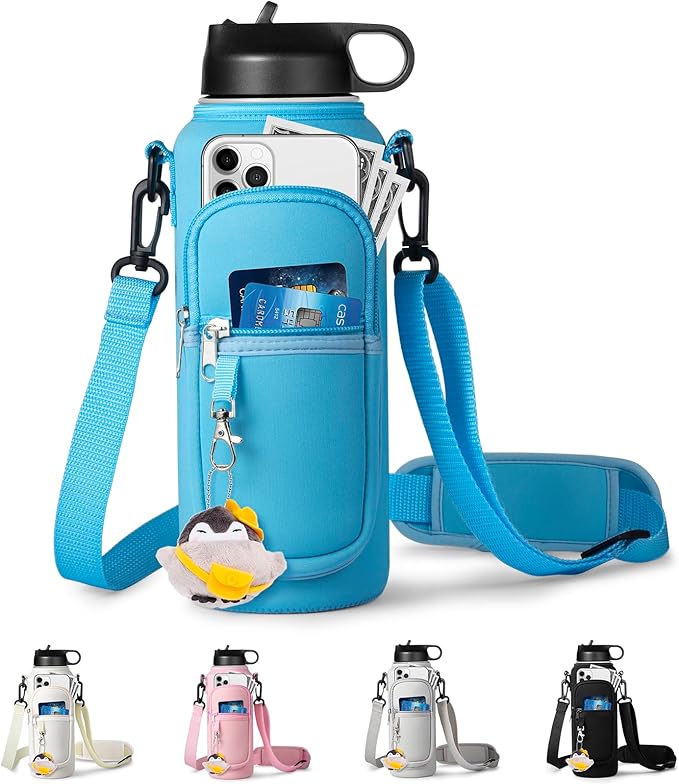Water Bottle Holder with Strap for Hydroflask 32oz 40oz, Carrier Sling Bag with Phone Pocket Sleeve for Men Women Hiking Camping Travelling