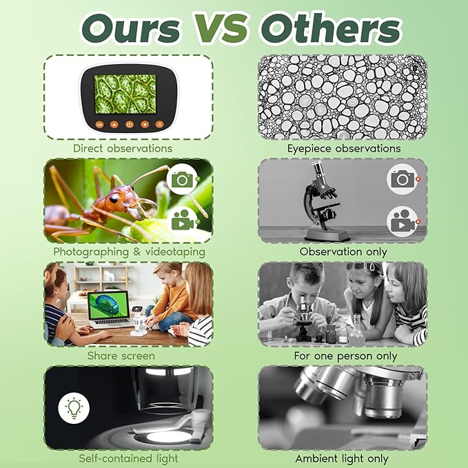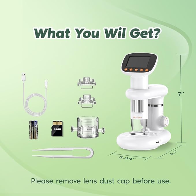 - 【Photos and Videos】Digital microscope is more than a microscope. It's also a camera that supports video resolutions up to 1080P, as well as photo resolutions up to 2MP. (32G Micro SD card included)