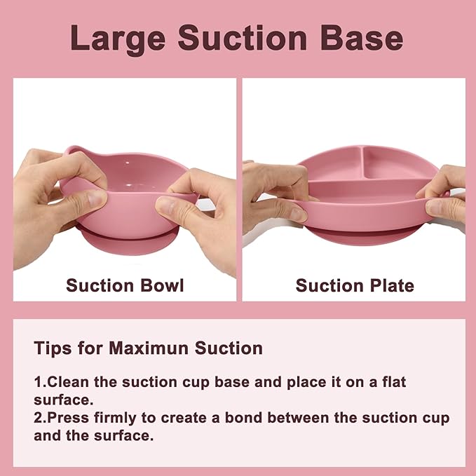 - Strong Suction: Our baby plates and baby bowls features a strong suction base that securely adheres to smooth surfaces, including high chair trays, preventing your baby from pulling it off. The divided plate design holds various foods separately, allowing your baby to learn self-feeding without worrying about making a mess on the floor or dropping plates and bowls. Enjoy every mealtime moment with you and your baby.