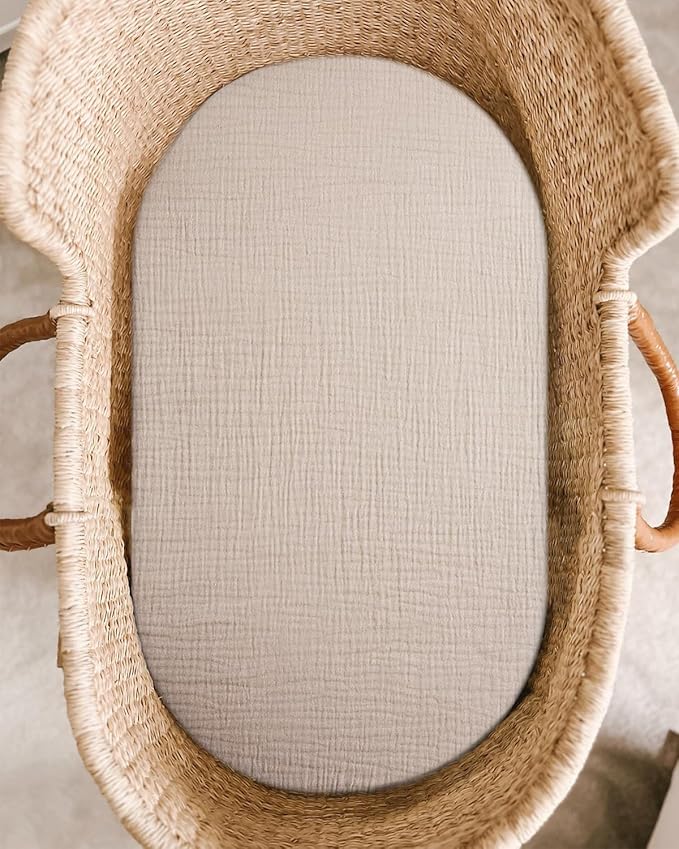 Bassinet Sheet for Baby Boy and Girl 2 Pack, Fitted Sheets for Rectangle, Oval, Hourglass Bassinet Mattress, Muslin Moses Basket Sheets with Neutral Style (Beige & Cream)