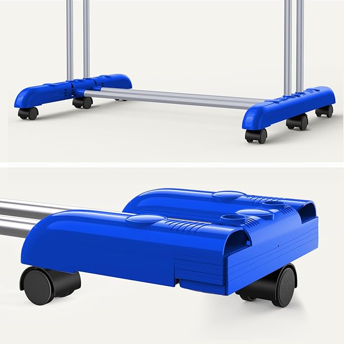 Bigzzia Clothes Drying Rack, 67.7 Inch Laundry Drying Rack with Foldable Base, 4 Tier Stainless Steel Drying Rack Clothing, Movable Laundry Rack for Indoor Outdoor-Blue