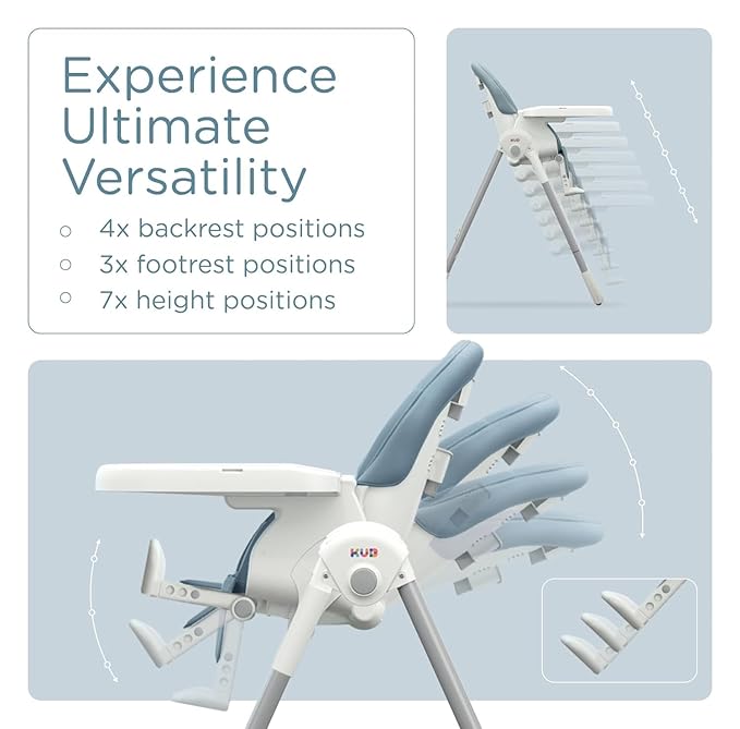 KÜB 3-in-1 Foldable Baby High Chair, 7 Height & 4 Recline Adjustable Seat & Tray for Easy Clean, 2 Locking Wheels, Multifunctional Infant High Chairs for Babies and Toddlers (Blue, with Toys)