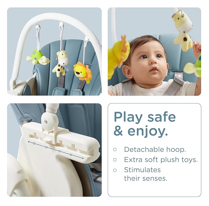 - Childhood Joy: comes with a free high chair toys arch, the position and angle of the toys arch can be adjusted at will, and individual toys can be easily disassembled. so your little one will never get bored, this perfect baby high chair is cute and fun for bebe. (Please note: Due to manufacturing updates, toys on the toy arch may vary between detachable or fixed designs by batch. )