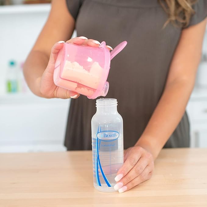 - Contains (1) Dr. Brown's Insta-Prep Warm Water Dispenser to Instantly Prepare Baby’s Formula Bottle,Large Capacity Glass Tank with 3 Temperature Settings, Black (1) Dr. Brown's Baby Formula Dispenser with Snap-On Lid for On-the-Go Feedings,Milk Powder Dispenser for Traveling with Infant, Pink