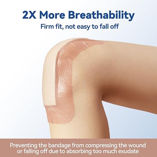 - 360° Outward Extension, More elastic&Less dislodgement - The unique internal cutting design allows the dressing to extend 360° outward, which is more elastic and less taut, fits the skin better.This ultra-absorbent bandage has excellent breathability, which reduces the burden of wound care by preventing the bandage from compressing the wound or falling off due to absorbing too much exudate