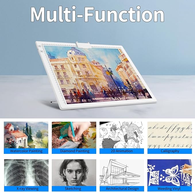- 【 Widely Application 】 This A3 tracing drawing pad is large enough for diamond painting, weeding vinyl, stencilling, 2D Animation, calligraphy, embrossing, scrapbooking, tattoo transferring, sketching, sewing projects, stainde glass, quilting and so on.And it also a good gift choice for Christmas, Birthday and Holidays for your friends, kids and your family.