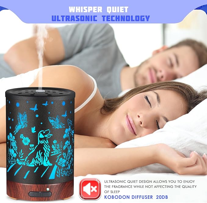 Essential Oils Diffuser,Aromatherapy Diffuser,Birthday Gifts for Women Mom Grandma,Metal Cool Mist Humidifier with 7 Colors Lights Waterless Auto Off Air Diffusers (Dogs)…