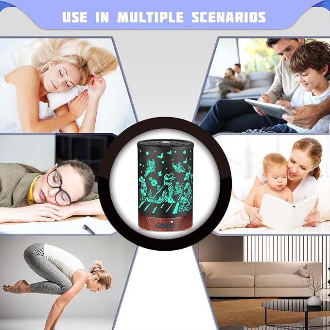 - 【Attractive Design 】The air diffuser for essential oils has 7 color led lights, each color has bright and dim, or turn off all lights for total darkness. Working time: 6 hours in continuous mode.You can choose your prefered color mode to meet your different needs.And It's also a great dragonfly diffuser gifts for women