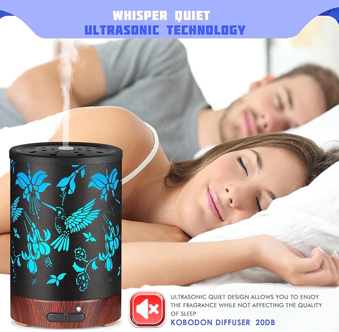 Metal Essential Oils Diffuser 150ML Christmas Aromatherapy Diffuser Cool Mist Humidifier with 7 Colors Lights Waterless Auto Off Air Diffusers as Gifts for Mom (B-Hummingbird)