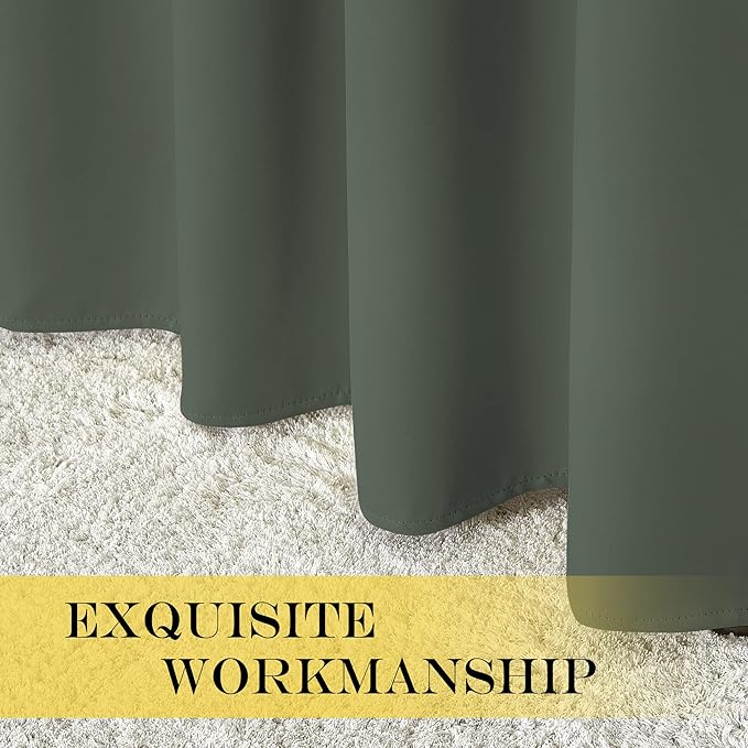- Amazing Material: Super heavy and soft Blackout Curtain Panels are very upmarket. Besides, 85%-99% light blocking, thermal insulated, soundproof, and energy-efficient. Thread trimmed and wrinkle-free, both sides are the same color.