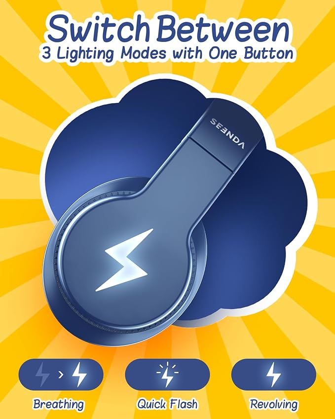 seenda Kids Bluetooth Headphones, Colorful Wireless Over Ear Headset with 85dB/94dB Volume Limited, 45H Playtime, 3 Lighting Modes, Built-in Mic Headphones for Boys Girls iPad Tablet School Dark Blue