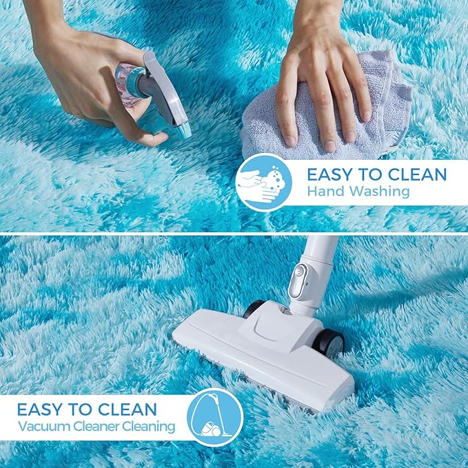 - 💗Easy To Clean - We recommend that you can directly shake off the impurities on the surface of the shaggy carpet or use a vacuum cleaner for daily cleaning. For deep stains, you can choose to wash by hand . After cleaning, place it in a ventilated place to air dry. Note: Vacuum packed, please lay flat and will fluff up back in 2-3 days.