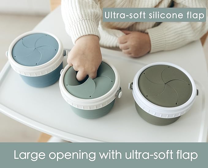 No Spill Silicone Toddler Snack Containers, Detachable Silicone Flap for Filling&Cleaning, Crumb-Free Hard Plastic Screw Travel Lid, Ultra-Soft for Baby Kids Hand In-Out, Snack Cup Holder 12 oz