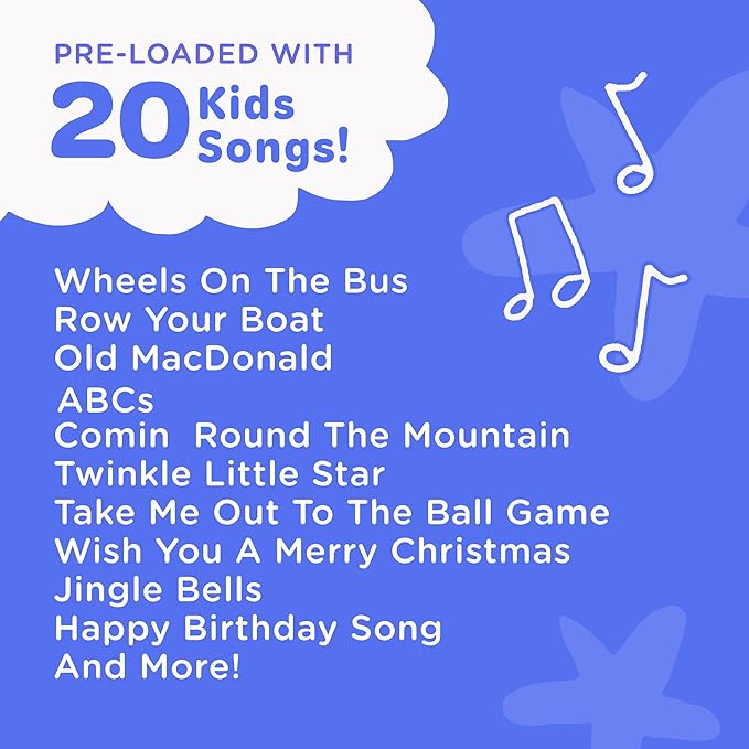 - 20 NURSERY RHYMES : Create a concert in your living room! Pre-loaded with toddler fav’s like Twinkle Twinkle Little Star, Wheels on the Bus, ABC's, and more!
