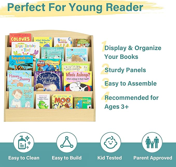 - 【SUITABLE FOR MULTIPLE SCENES】 - The five-tier open display design creates an open environment for children's group activities, encouraging them to read and play together. The book display shelf design is suitable for any room or environment. Perfect for storing books in your child's bedroom, playroom, nursery, or living room.🌈📖
