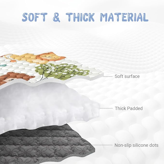 - 【Themed Design】The playmat for baby printed with cartoon forest and animal pattern, pastel & fascinating, which can easily draw babies' attention, bringing them a lot of fun. thick & soft mat provides cushioning for babies crawling, tummy time, rolling, sit up, stand and learning to walk, create a comfort space for your little angel.