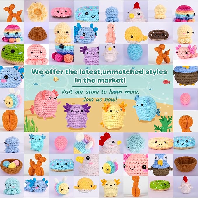 - Family Crochet Kits: Our crocheted axolotls are not only easy to make, but also incredibly adorable, symbolizing a loving and united family. Crafting them is meaningful and they are perfect for home decor as well.