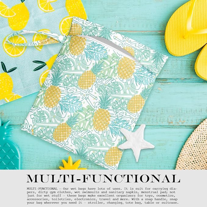 • MULTI-FUNCTIONAL – Our wet bags have lots of uses. It is suit for carrying diapers, dirty gym clothes, wet swimsuits and sanitary napkin, menstrual pad; not just for wet stuff - these bags make excellent organizers for toys, cosmetics, accessories, toiletries, electronics, travel and more. With a snap handle, snap your bag wherever you need it - , changing,tote bag, table or suitcase.