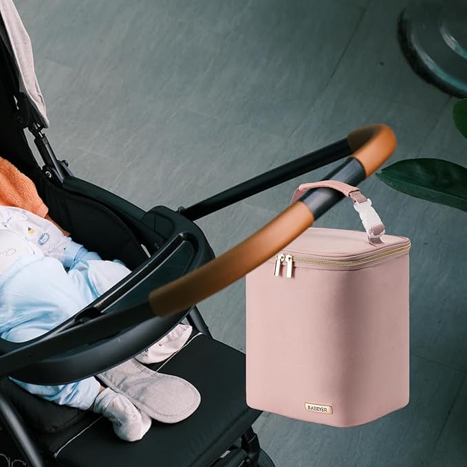 - High Quality:BABEYER Baby bottle bag is made of high Polyester dirt-proof fabric, and durable smooth mental zipper. The lining of the cooler bottle bag are waterproof and wipeable. The side pocket can put some useful items, like phones, keys and so on