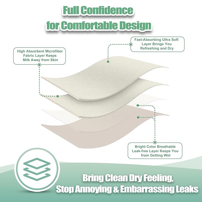 - Absorbent Middle Layer Microfiber provides strong absorbency ensuring no leaking at night; The Outer layer back side TPU lamination can efficiently keep wet away from mama bra or clothes; Nursing pads may not have the leek-free TPU as outer layer; Great for keeping off night time puddles and day time embarrassing leaks