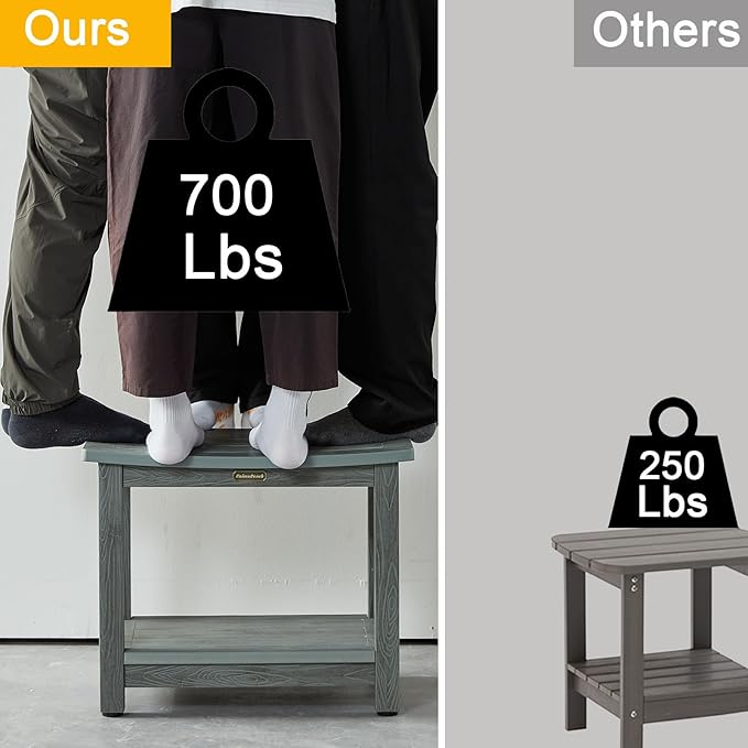 Heavy Duty Shower Bench for Inside Shower Waterproof, Large HDPS Bath Stool for Shaving Legs, Gray Poly Lumber Foot Stool, Plastic Bathroom Bench Seat with Storage Shelf, Outdoor/Indoor Use