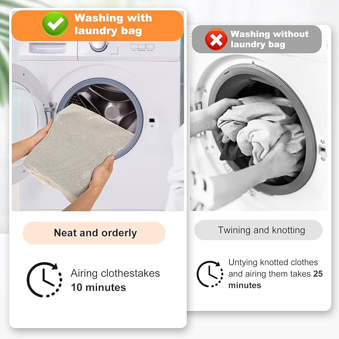 - 【Breathable Mesh, Special Zipper】Breathable mesh allows water to flow in and out smoothly, making it easy for the washer to deep clean clothes without wrinkling. The rust-resistant and durable zipper comes with a rubber band cover. You will say goodbye to zipper scratches on the washer and the opening of the laundry bag during the washing process.